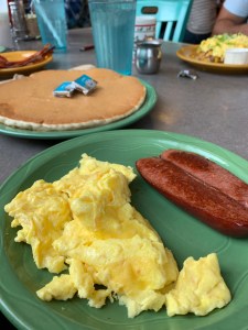 I came upon this spot due to the recommendation of my co-workers. It’s not the worst food ever but it’ll leave you wondering what the hype is all about. The crowd can get pretty big in a hurry. I recommend going a little in the morning to beat the rush, but if it’s too packed when you get there don’t sweat picking another spot. Menu has some unique offerings like reindeer sausage (pictured below).